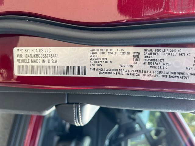- VIN : 1C4RJKBG0S8748441