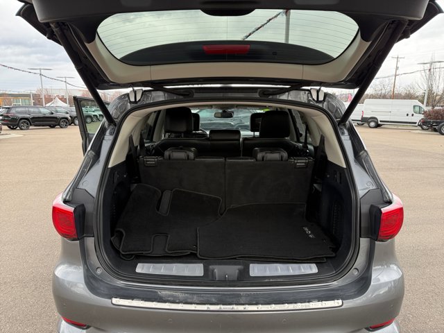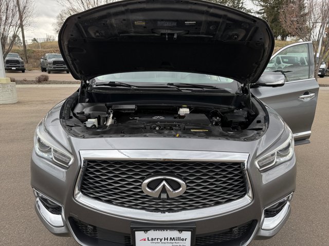 2020 INFINITI QX60 LUXE Essential Package,ProACTIVE Package,Sensory Package,Theater Package,13 Speakers,AM/FM radio: SiriusXM,Bose CenterPoint 15-Speaker Sound System,CD player,Radio data system,Radio: AM/FM/CD/MP3 w/Bose Premium Audio System,Wireless Headphones (2),Advanced Climate Control System,Air Conditioning,Automatic temperature control,Front dual zone A/C,Rear air conditioning,Rear window defroster,Memory seat,Power driver seat,Power steering,Power windows,Remote keyless entry,Steering wheel memory,Steering wheel mounted audio controls,Cross Bars,Four wheel independent suspension,Speed-sensing steering,Traction control,4-Wheel Disc Brakes,ABS brakes,Anti-whiplash front head restraints,Dual front impact airbags,Dual front side impact airbags,Front anti-roll bar,Front Pre-Crash Seatbelts,Low tire pressure warning,Occupant sensing airbag,Overhead airbag,Rear anti-roll bar,2nd & 3rd Row Moonroof w/Power Rear Sunshade,Power moonroof,Power Liftgate,Active Trace Control,Blind Spot Warning,Brake assist,Distance Control Assist,Electronic Stability Control,Lane Departure Warning System,Delay-off headlights,Front fog lights,Fully automatic headlights,Panic alarm,Security system,Intelligent Cruise Control (Full-Speed Range),Speed control,Auto Side Dimming Mirrors,Bodyside moldings,Bumpers: body-color,Heated door mirrors,High Beam Assist (HBA),Motion Activated Liftgate,Power door mirrors,Rear Bumper Protector,Roof rack: rails only,Splash Guards,Spoiler,Turn signal indicator mirrors,120V Power Outlet,1st & 2nd Row Unique Hour Glass Seat Quilting,Around View Monitor w/Moving Object Detection,Auto-dimming Rear-View mirror,Backup Collision Intervention (BCI),Blind Spot Intervention (BSI),Carpeted Floor Mats (4-Piece Set),Driver door bin,Driver vanity mirror,Dual 8 Color Monitors,ECO Pedal,Front & Rear Sonar Sensors (2FR/2RR),Front & Rear Sonar Sensors (4FR/4RR),Front reading lights,Garage door transmitter: HomeLink,Heated steering wheel,Illuminated entry,Illuminated Kick Plates (IKP),Illuminated Kick Plates (K11),INFINITI InTouch w/Navigation & InTouch Services,Lane Departure Prevention (LDP),Leather steering wheel,Literature Kit,Maple Interior Accents,Outside temperature display,Overhead console,Passenger vanity mirror,Rear reading lights,Rear seat center armrest,Tachometer,Telescoping steering wheel,Tilt steering wheel,Trip computer,Voice Recognition for Navigation Functions,Welcome Lighting,3rd row seats: bench,Climate-Controlled Front Seats,Front Bucket Seats,Heated 2nd-Row Seats,Heated Front Seats,Heated front seats,Leather-Appointed Seat Trim,Leatherette Seat Trim,Power passenger seat,Power Return 3rd Row Seat Back,Reclining 3rd row seat,Split folding rear seat,Cross Bars (K12),Front Center Armrest w/Storage,Passenger door bin,Alloy wheels,Wheels: 18 Triple 5-Spoke Aluminum-Alloy,Wheels: 20 15-Spoke Aluminum-Alloy,Rain-Sensing Front Windshield Wipers,Rear window wiper,Speed-Sensitive Wipers,Variably intermittent wipers,Axle Ratio: 5.25, [K02] SENSORY PACKAGE -inc: Bose CenterPoint 15-Speaker Sound System driver's audio stage Climate-Controlled Front Seats Heated 2nd-Row Seats Outboard only Advanced Climate Control System (ACCS) auto recirculation Plasmacluster air purifier and grape polyphenol filter Maple Interior Accents 1st & 2nd Row Unique Hour Glass Seat Quilting 2nd & 3rd Row Moonroof w/Power Rear Sunshade Wheels: 20 15-Spoke Aluminum-Alloy Motion Activated Liftgate Tires: 235/55R20 H-Rated All-Season Cross Bars Power Return 3rd Row Seat Back, [K11] ILLUMINATED KICK PLATES (K11), [N92] WELCOME LIGHTING, [K12] CROSS BARS (K12), [V02] PROACTIVE PACKAGE -inc: Active Trace Control Distance Control Assist (DCA) Auto Side Dimming Mirrors Backup Collision Intervention (BCI) Intelligent Cruise Control (Full-Speed Range) Blind Spot Intervention (BSI) High Beam Assist (HBA) Front & Rear Sonar Sensors (4FR/4RR) Front Pre-Crash Seatbelts Lane Departure Prevention (LDP) ECO Pedal Lane Departure Warning (LDW), [L11] CARPETED FLOOR MATS (4-PIECE SET) -inc: 1st 2nd and 3rd rows, [B11] REAR BUMPER PROTECTOR, GRAPHITE LEATHERETTE SEAT TRIM, GRAPHITE SHADOW, [S55] LITERATURE KIT, [B92] SPLASH GUARDS -inc: Color matched set of 4, [H01] THEATER PACKAGE -inc: 2nd row USB port (audio/video) HDMI port (replaces 2 standard USB charging ports in 2nd row) wireless remote control 12V power point rear headphone jacks w/volume control 120V Power Outlet Wireless Headphones (2) Dual 8 Color Monitors, [K01] ESSENTIAL PACKAGE -inc: Front & Rear Sonar Sensors (2FR/2RR) Around View Monitor w/Moving Object Detection Rain-Sensing Front Windshield Wipers INFINITI InTouch w/Navigation & InTouch Services lane guidance 3D building graphics 4-year complimentary trial of select package 1-year complimentary trial of premier package and SiriusXM Traffic w/4-year complimentary trial access to real-time traffic weather fuel prices stocks sports and movie times Voice Recognition for Navigation Functions 1-shot voice destination entry Illuminated Kick Plates (IKP), GRAPHITE LEATHER-APPOINTED SEAT TRIM -inc: 1st and 2nd rows, All Wheel Drive, Power Steering, ABS, 4-Wheel Disc Brakes, Brake Assist, Aluminum Wheels, Tires - Front All-Season, Tires - Rear All-Season, Temporary Spare Tire, Sun/Moonroof, Generic Sun/Moonroof, Heated Mirrors, Power Mirror(s), Integrated Turn Signal Mirrors, Power Folding Mirrors, Rear Defrost, Privacy Glass, Intermittent Wipers, Variable Speed Intermittent Wipers, Rear Spoiler, Remote Trunk Release, Power Liftgate, Power Door Locks, Daytime Running Lights, Automatic Headlights, LED Headlights, Fog Lamps, AM/FM Stereo, Satellite Radio, MP3 Capability, Steering Wheel Audio Controls, Bluetooth Connection, Auxiliary Audio Input, HD Radio, Requires Subscription, CD Player, Premium Sound System, MP3 Capability, Premium Sound System, Bluetooth Connection, Power Driver Seat, Power Passenger Seat, Bucket Seats, Heated Front Seat(s), Driver Adjustable Lumbar, Seat Memory, Pass-Through Rear Seat, Rear Bench Seat, Adju